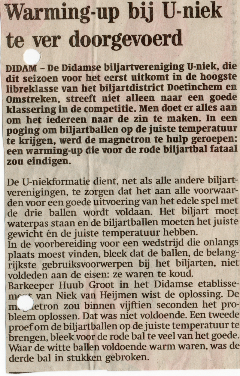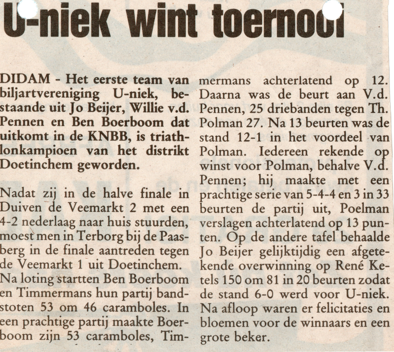 Dit zijn de driebanden kampioenen van de Liemers competitie omstreeks 1989.